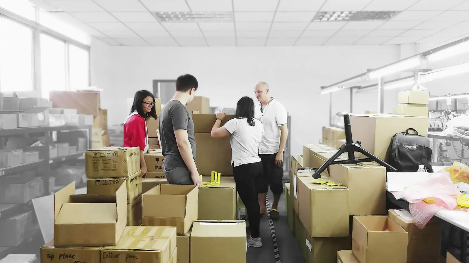Our office is not factory-sized, and we play room-Tetris with the dozen of the palettes. With great nostalgia, we started unpacking everything again. Trapped between two boxes, we even found a pair of sunglasses that we thought lost in China!