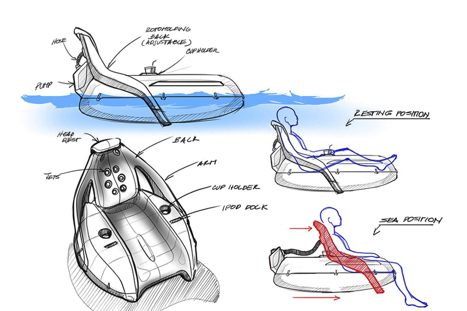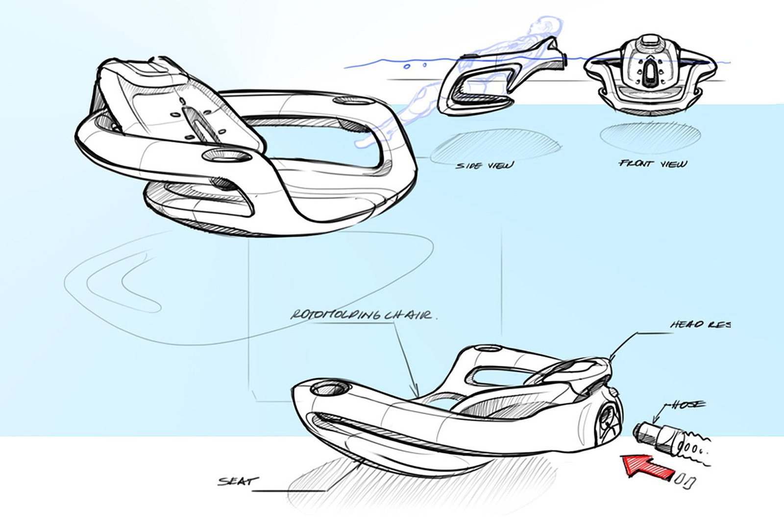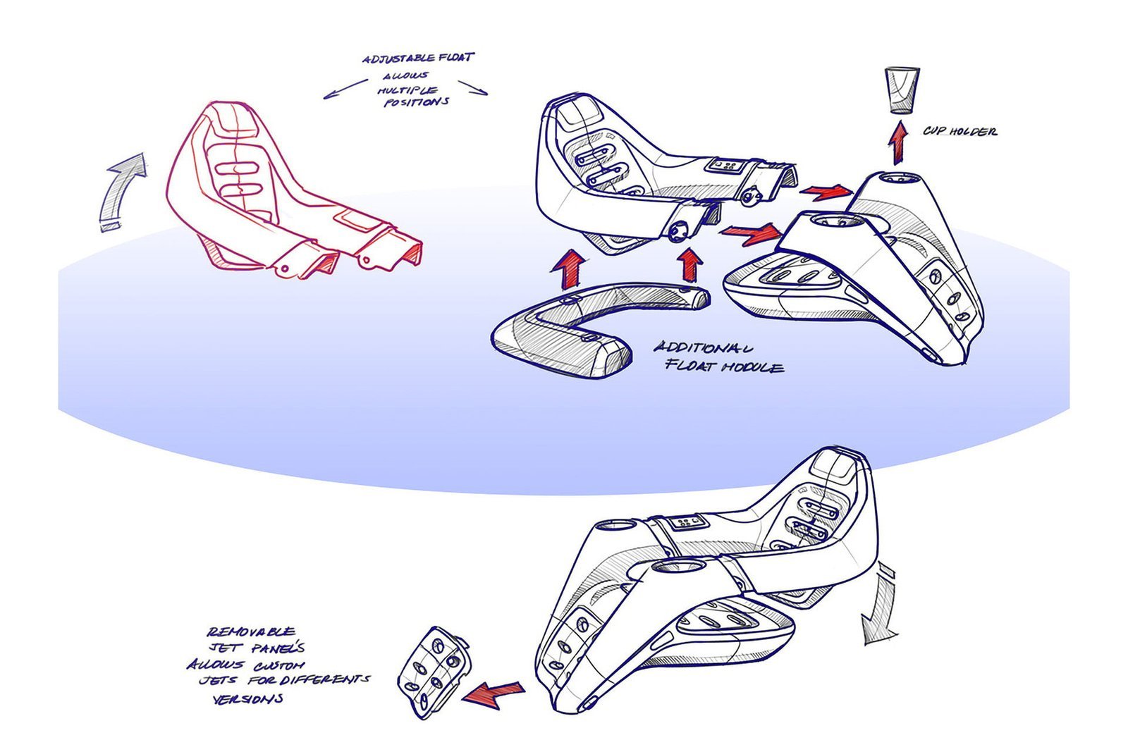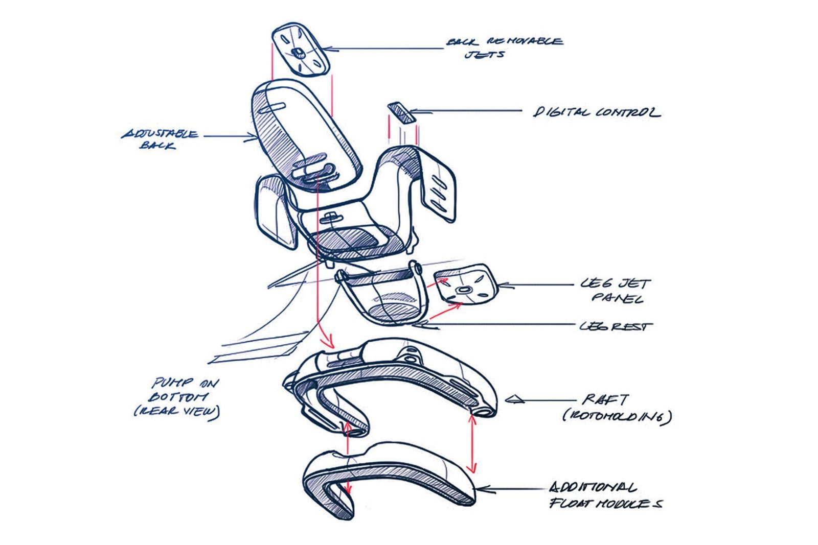 Concept sketches.Concept sketches and brainstorming for an ergonomic water therapy unit.